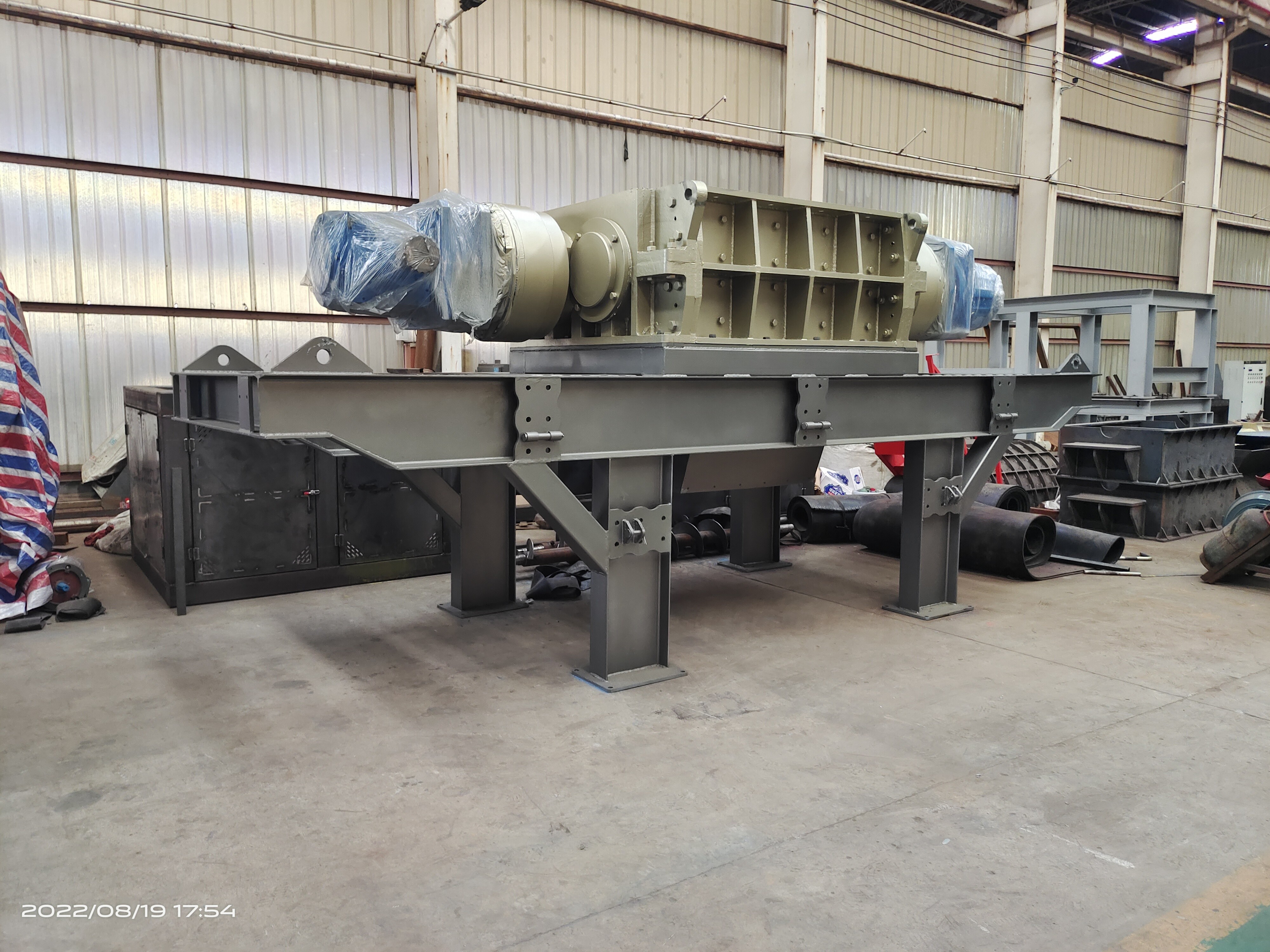 Deze tweevoudige scheermachine heeft geen scherm. Nadat materiaal in de hopper is gevoerd, wordt het materiaal behandeld met behulp van twee tegenroterende messen en vervolgens rechtstreeks ontladen.